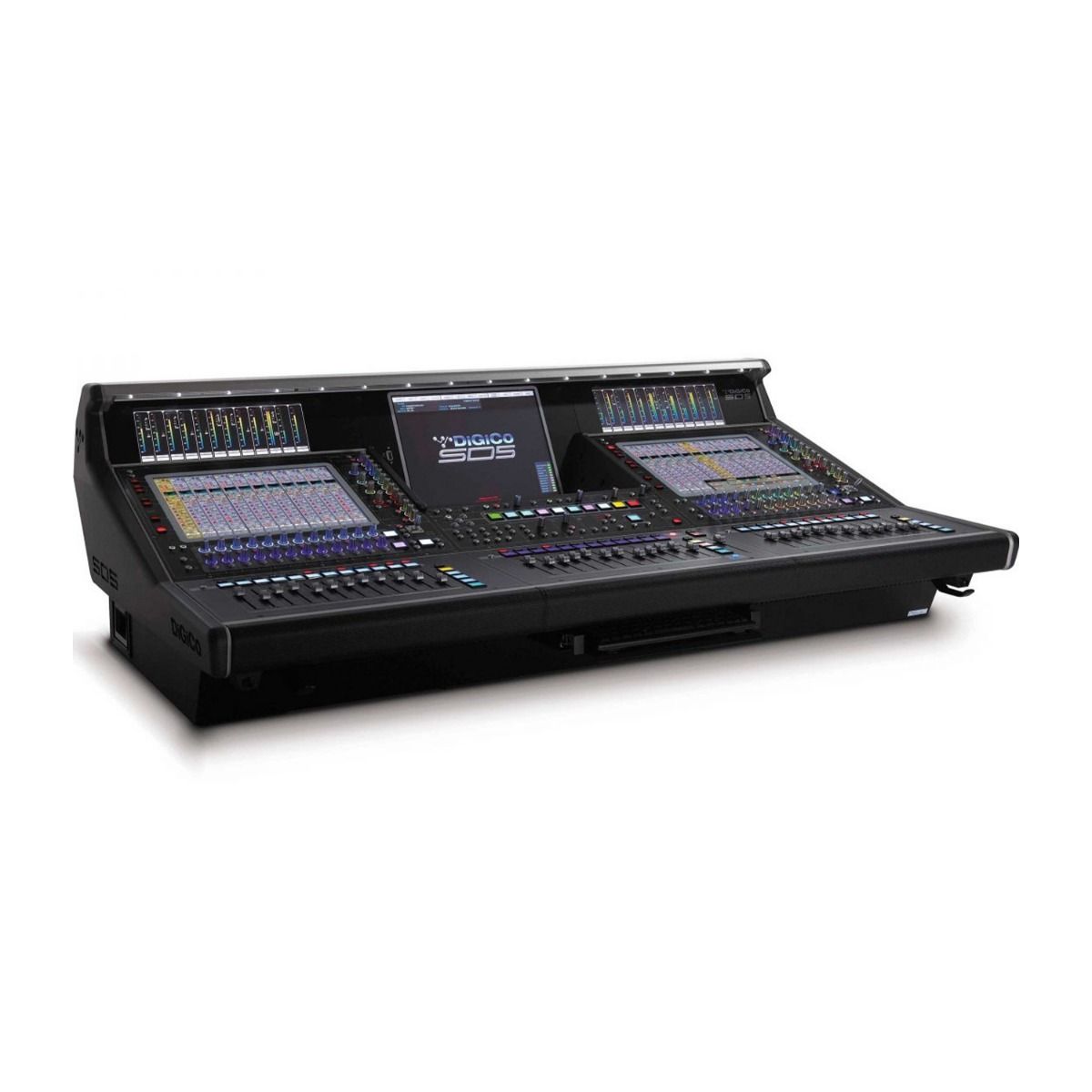 A total of 37 faders are laid out in three easy-to-operate banks of 12 with one master fader plus three 15-inch full colour TFT touchscreens for immediate access to functions and multi-user applications. Two Interactive Dynamic Metering (IDM) displays offer the same at-a-glance operation as the SD7, while the centrally located master screen is incorporated into the meter-bridge, so the engineer’s attention remains where it belongs – on the artist.