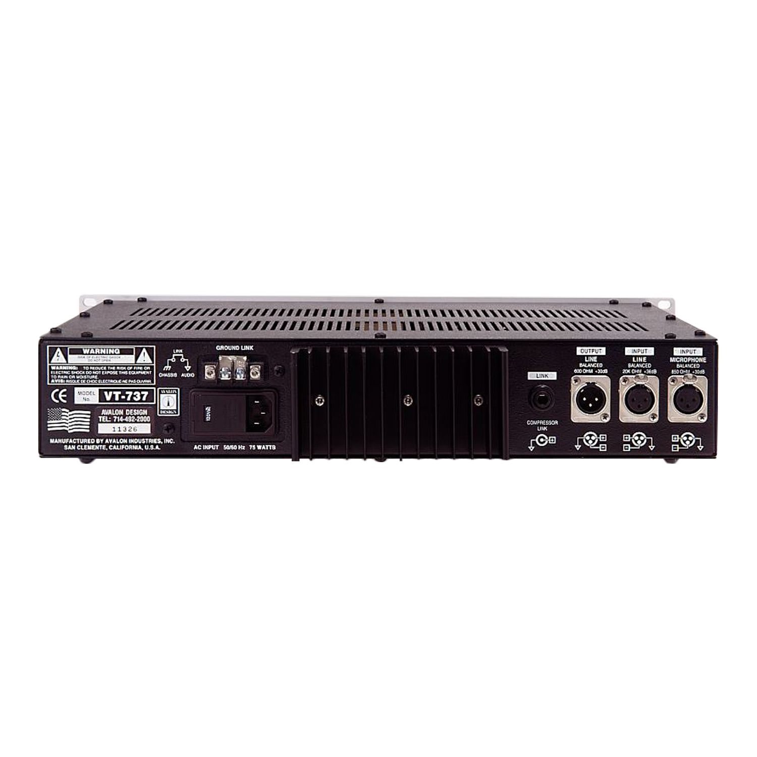 Circuit topology Four dual triode vacuum tubes (Sovtek 6922), high-voltage discrete Class A Gain Range Microphone: Transformer balanced 850/2500 ohm, 0dB to +58dB Instrument: Unbalanced 1 meg ohm, 0dB to+30dB Line: Balanced Class A 20k ohms, -27dB to 28dB Maximum input level and connector types Microphone: 26dB@25Hz, +30dB@1kHz balanced XLR Instrument+30dB unbalanced front panel jack socket Line +36dB balanced XLR Maximum output level +30dB balanced 600 ohms, DC coupled, discrete Class A Output type and gain XLR connector, output trim gain -45dB to 20dB Noise 20kHz unweighted -92dB Noise microphone EIN -116dB, 22Hz to 22kHz unweighted Distortion THD, IMD 0.5% Frequency response -/2.5dB 10Hz to 120kHz input filter included Frequency response -3dB 1Hz to 200kHz line in-out VU meter and gain reduction High quality illuminated OVU =+4dB and gain reduction to -20dB High cut filter Variable 6dB per octave 30Hz to 140Hz Compressor type Optical passive attenuator incorporating twin vacuum tubes and stereo link Threshold - Ratio Threshold variable -30dB to +20dB, ratio-compression variable 1:1 to 20:1 Attack - Release Attack variable 2mS to 200mS, release variable 100mS to 5 seconds Equalizer type Discrete Class A, variable active and switched passive design Frequency bands (4) Treble - switched 10kHz, 15kHz, 20kHz, 32kHz, +/- 20dB range, shelf High mid - variable 200Hz to 2k8Hz and 2kHz to 28kHz, +/- 16dB range, hi-lo Q Low mid - variable 30Hz to 450Hz and 300Hz to 4k5Hz, +/- 16dB range, hi-lo Q Bass - switched 15Hz, 30Hz, 60Hz, 150Hz, +/- 24dB range, shelf AC power Internal toroidal 100v to 240v, 50-60Hz selectable, 75 watts maximum Dimensions 19 x 12 x 3.5 in (482 x 305 x 89mm) Weight 22lbs (10kg) Dimensions-shipping carton 21 x 18 x 8 in (533 x 457 x 203mm) Weight-packed 26lbs (11.8kg)
