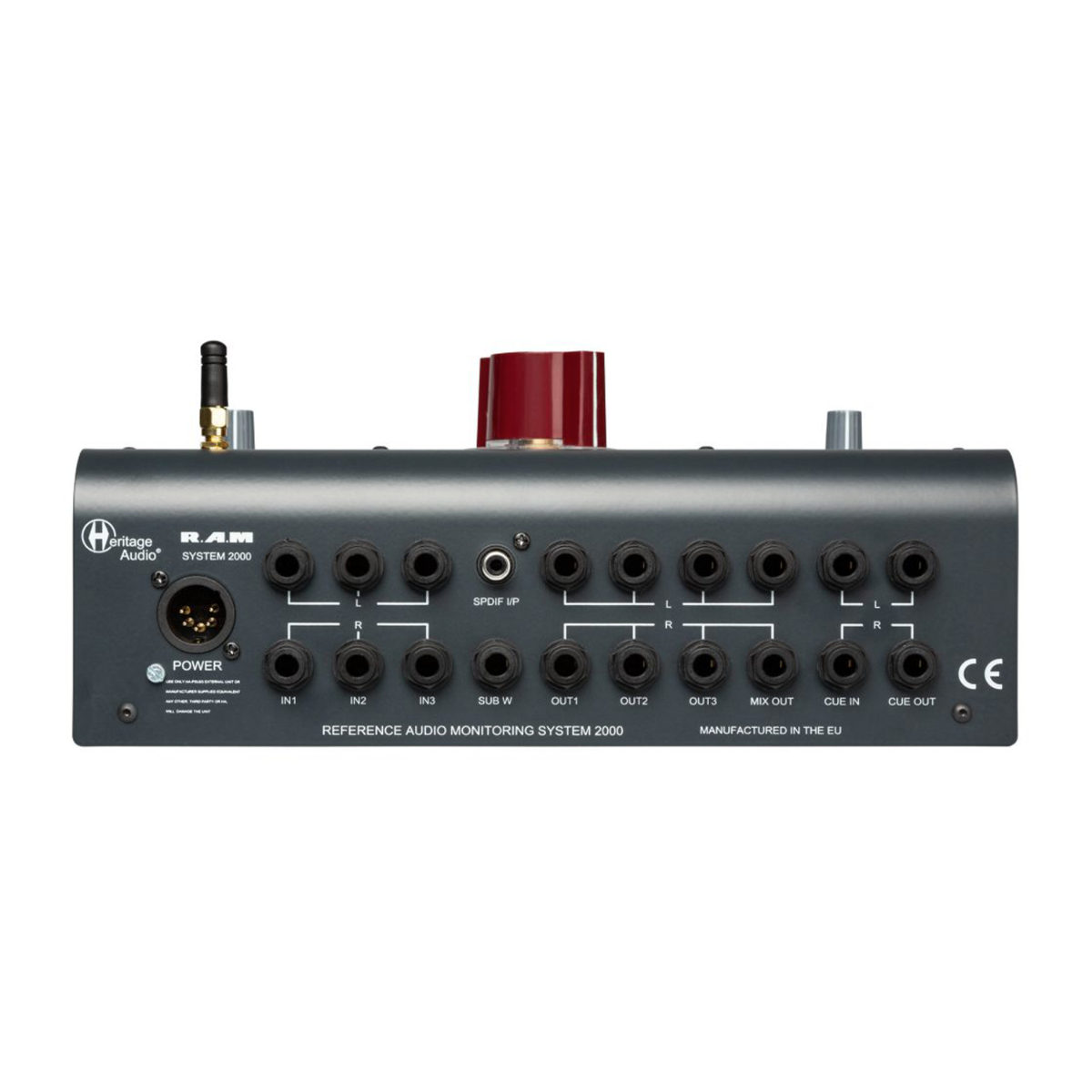 The System 2000 features generous I/O, with three pairs of +4dBu balanced analog inputs and three stereo outputs, an independent pre-fader Mix Out, independent stereo Cue I/O, a S/PDIF coax input, and pro-audio-quality Bluetooth input for easy mobile device integration. The 2000's two audiophile-grade diamond-buffer-based headphone amplifiers are capable of driving any headphones without noise or coloration. For easy recall of common settings, two user-assignable preset levels are provided. For communicating with talent, there's a built-in talkback with console-style management. Lastly, Heritage Audio equipped the RAM System 2000 with an independent subwoofer output that lets you effortlessly share your sub between different speaker pairs.